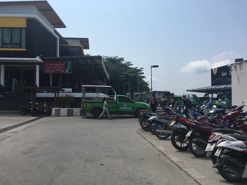 右側にあるソンテウ乗り場からソンテウに乗る。ウォンドゥアンビーチまで二人で150B