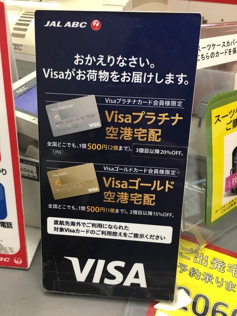 今回成田空港の宅配便カウンターで見たら、マスターだけじゃなくてビザのゴールドも同じ特典があるようでした。