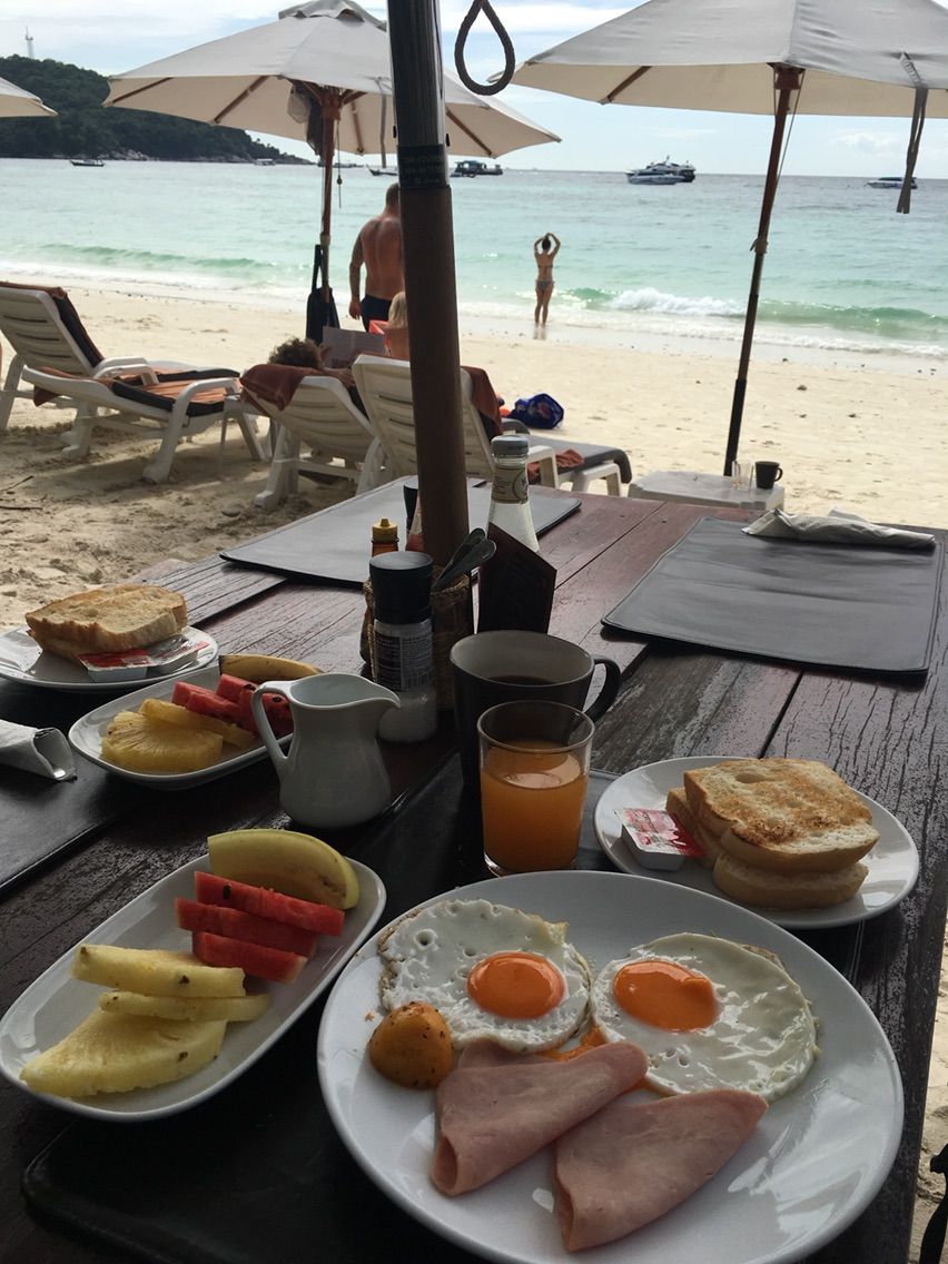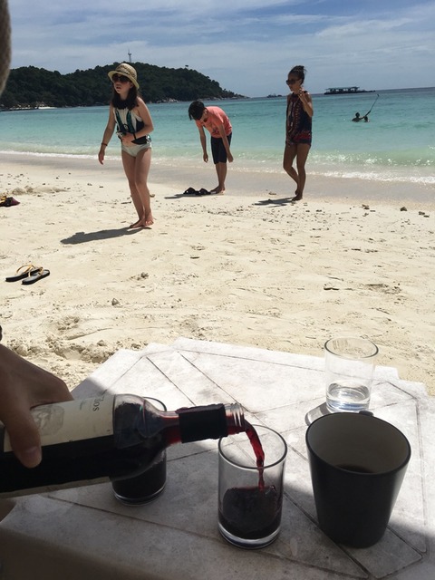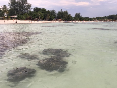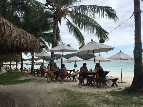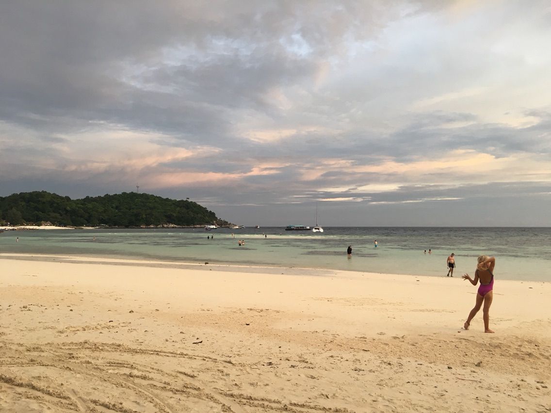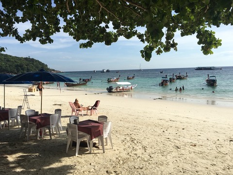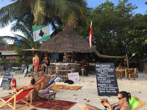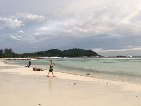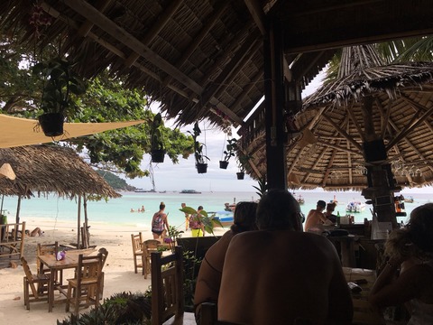 2018年01月27日 タイ最後の楽園リペ島⑩リペ島4日目の過ごし方 リペ島4日目。翌日は朝のフェリーで帰る為、リペ島最後の1日です。マリリゾート パタヤビーチの朝食。こうしてビーチで朝ごはんを食べれるのもこのホテルの良いところ。 こんな感じ 朝ご飯を食べたら早速ビーチベッドへ。 早速ワインを飲みながら。。 そしてランチはすぐお隣にあったイタリアンへ。ダイビングショップもやっているようでした。 Kioskinoというお店。 イタリア人がやっているお店 ニョッキとシンプルなパルメジャーノのパスタだったのだけど、これがすごく美味しくておかわりしたい位だった!!毎日タイ料理だったせいかもしれないけど・・ こんな景色を見ながらのランチ。パタヤビーチの方がサンライズビーチよりもレストランの選択肢は多いように思いました。 またビーチベッドに戻り海に入ったりして 次はマッサージへ。ビーチにいくつかマッサージ屋さんがありました。こんな場所で良い風を受けてマッサージ。 リペ島の海はなんというかエメラルドみたいな色だなぁ〜と。 午後潮が引いてきたらまた魚を見に行ったのですが、魚に噛まれた!結構痛くて丸い口の跡がついてます。。 段々潮が引いてきて 海の色も変わって 魚の大群!白い大きめの魚が凶暴で何度か足を噛まれた。 魚を見ながらも、何度も何度もこの景色を眺めてうっとり。 結構沖の方まで歩いていけます。 だんだん日が暮れてきて 絵画のような景色。この海の色と空の色。自然は何よりも美しいと思う瞬間。 更に暗くなり・・ 後ろ髪を引かれながらお部屋に戻りました。 本当に1日飲んで食べて、海に入って、魚を見て、また海を眺めっていうループのみなんだけど、これが本当に幸せな1日だった。