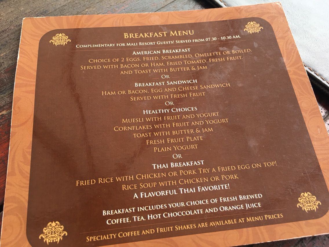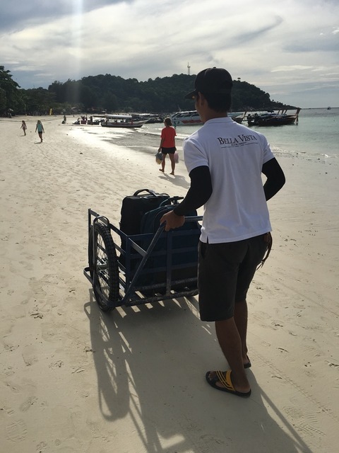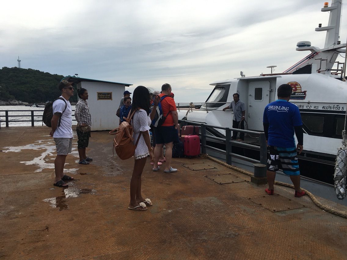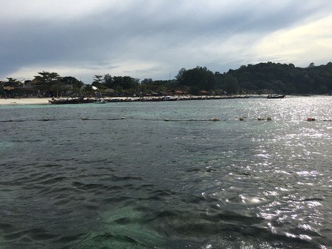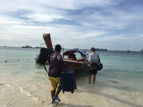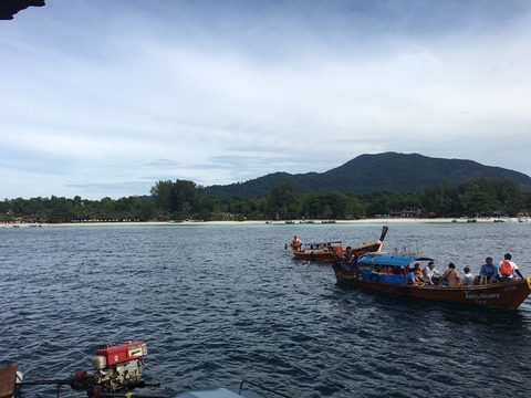 2018年01月31日 タイ最後の楽園リペ島⑫リペ島5日目バンコクに移動 リペ島5日目、9時半のフェリーで帰ります。 ホテルで朝ご飯。 マリリゾートの朝食メニュー 2日目はタイブレックファーストにしました。 朝まで潮が引いてて船がホテルの前まで来れないというので、ウォーキングストリートの入り口辺りまで歩いて行きます。 荷物はこんな風にホテルの人が運んでくれます。 ここから小舟に乗り、 リペ島ともお別れ・・ エメラルドグリーン! 小さな赤ちゃん含め3人の子供を連れてたのはスウェーデンの家族で、スウェーデンでは子供手当みたいなのが手厚く、子供が多くてもこうして旅行できる、みたいな話をしていました。 沖に浮いている船着場に到着 ここからフェリーに乗ります。 バクバラの港に着きました。こんな南部の風景。 今回バンとフェリーチケットを手配した ripeフェリーのオフェスは港の前にあります。この会社もとても良い対応でした。 ここからまた恐怖のスピード全開1時間半のバンでハジャイ空港まで・・