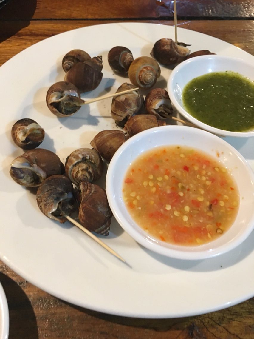 2018年01月30日 Cocotte Farm Roast&wineryで美味しいローストチキン プロンポン駅前の公園、これが噂のDine in The Skyですか。。人とは色々な事をやってみたくなるものですね。。 そんな事を思いながら向かったCocotte Farm、相変わらずの人気店。前日の予約では外の席しか空いてませんでした。 しかしまだギリギリ外を楽しめる気候なので、良かったです。ちょっと良い雰囲気でしょう? コロッケとハーブソーセージのサラダ。うーん、やっぱりここも外さないな〜と。美味しいです。 ワインはイタリアので、これまたとても美味しかった。 ここで食べたトマホーク最高に美味しかったのですが、この日は噂に聞いていたローストチキンを食べてみました。これもとても美味しかったです!そしてステーキも。やっぱり最高〜。二人でシェアして食べるのに良い量でしたよ。 店内いっぱい。結構人が近くてガチャガチャしてるので外の席は静かで意外と良かったと思いました。暑くない時ならば外の席おすすめ! 柚のデザート。 ★Cocote Farm Roast&Winery☆営業時間 11:00~14:30 18:00~22:30☆電話番号 092-664-6777☆場所 Soi39から31に抜ける道の途中右側 39boulevard1階Cocotte FarmのFacebookページ