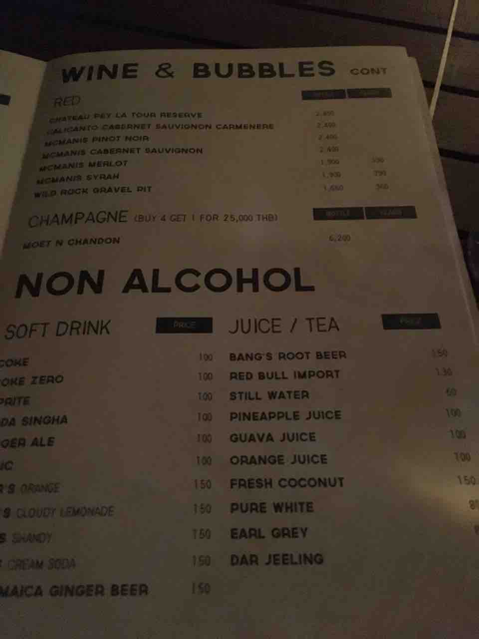 値段は結構高め!ワイン1杯390Bとかなのでホテルのラウンジと