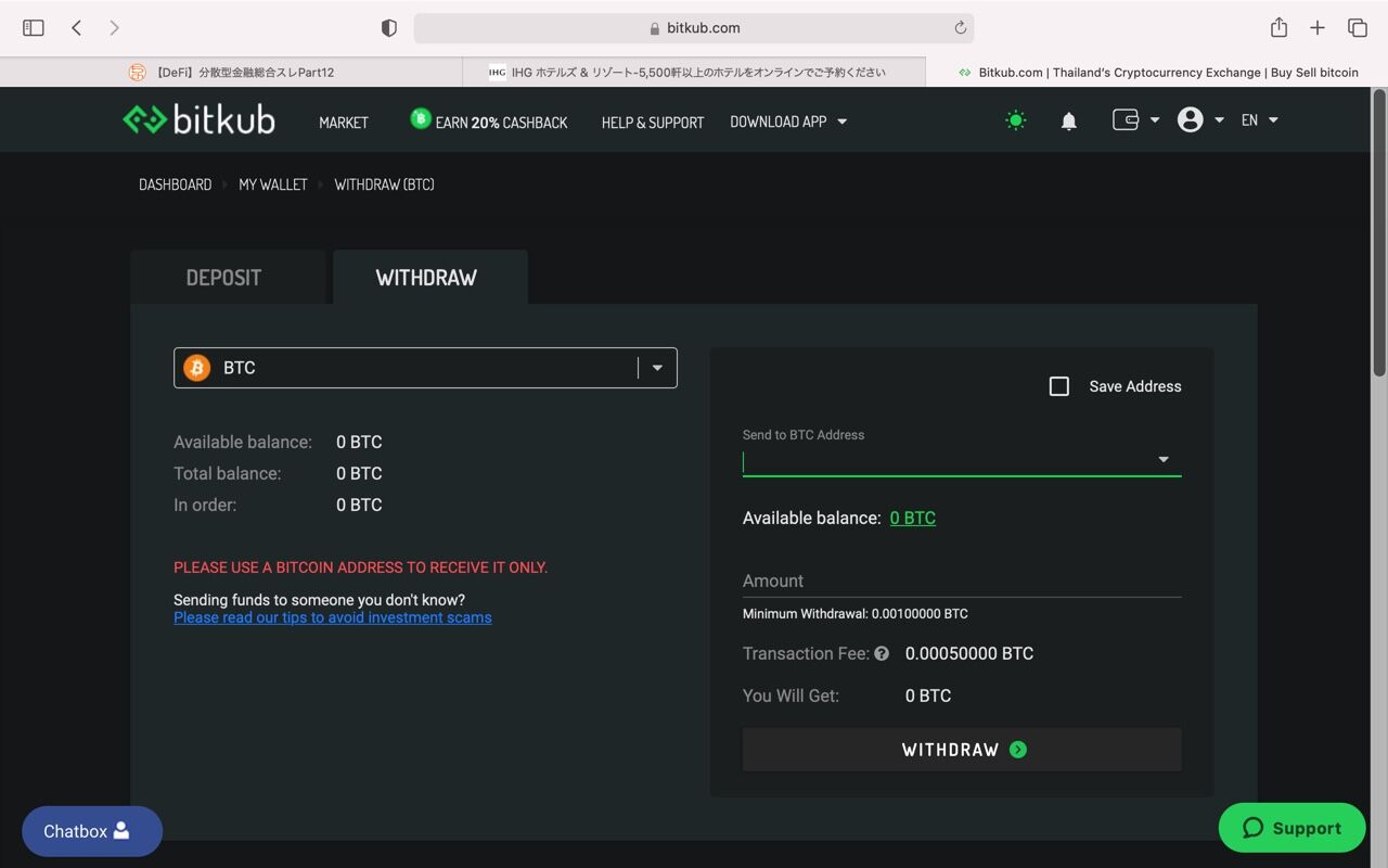 私がBTCを送った時はbitkubでサイトの不具合がありメンテナンスを