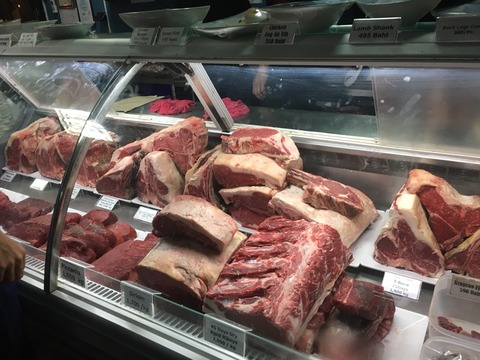 スアンプル店やトンローはパックされたお肉です。