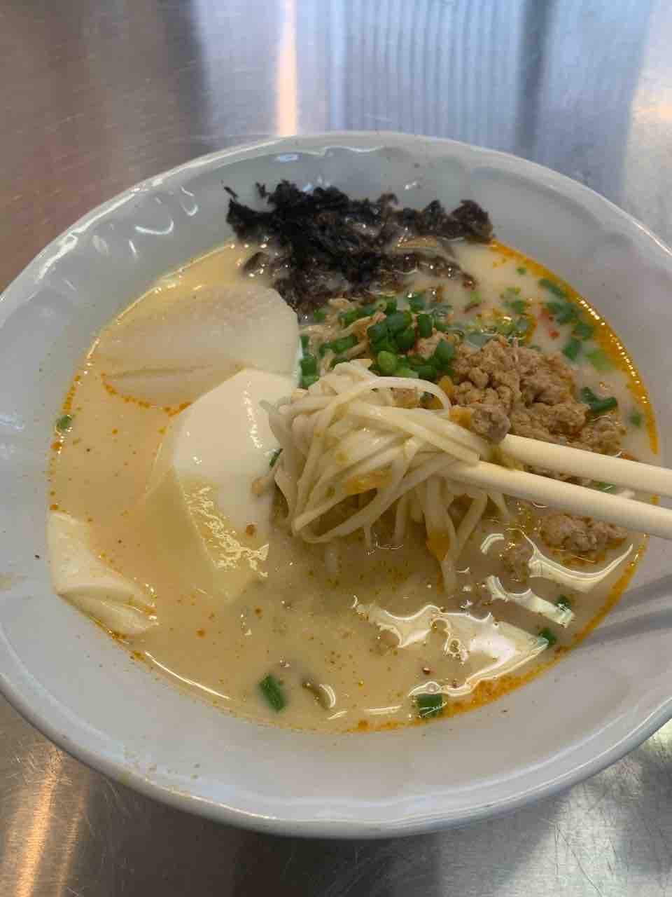2025年01月10日 「APOLLO」の豆腐麺 シーロムソイ3を5分位入って左にある小さなソイを入ると奥の左側に「APOLLO」という小さなお店があります。チャイニーズヌードルのお店。1階席は少ないですが、2階もあります。ここのお豆腐麺が優しい味でとても美味しい!半透明のツルツルした麺を挽肉とお豆腐と食べます。85Bです。豆乳はちょっと甘かった。別の日に食べた豆乳スープ麺。これも美味しい。麺の種類が前のと違って、私は前のツルツル麺が好きです。タイのクイッティアオに飽きたら行ってみてください。 「バンコクの食」カテゴリの最新記事 < 前の記事次の記事 > コメント コメントフォーム 名前 コメント 評価する リセット リセット 顔 星 投稿する 情報を記憶