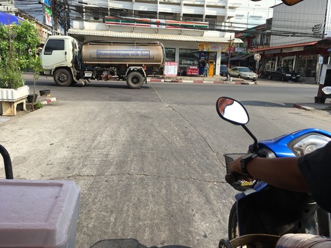 着いたピアーは別のところでそこからバイクに席がついたようなので車が停めてある所まで無料で連れて行ってくれました。セブンの前を入って行くピアーでした。