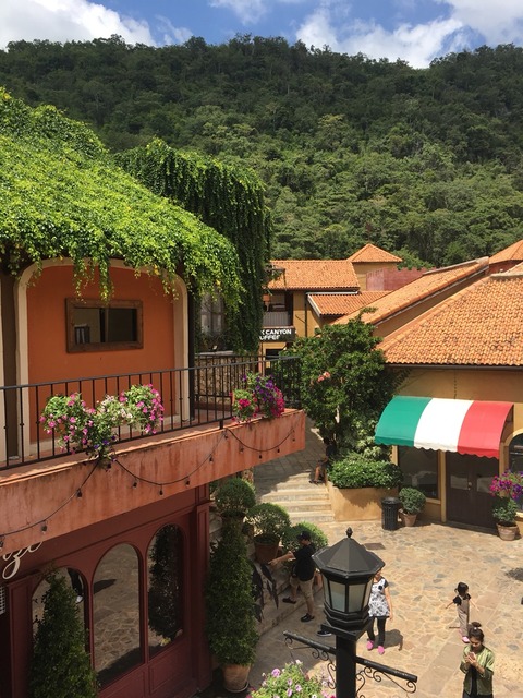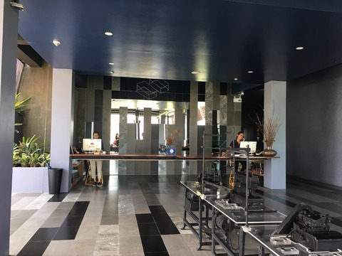 坂道を上りホテルのロビーへ。眺めが良い〜〜