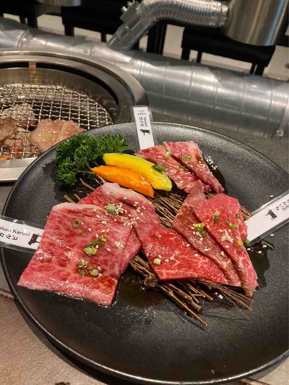 右の方にある石が熱くなっててそこに乗せてジュージューして