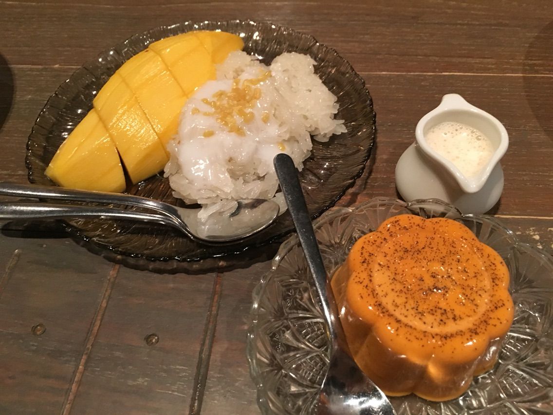 デザート。カオニャオマムアンとタイミルクティーのパンナコッタ。